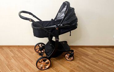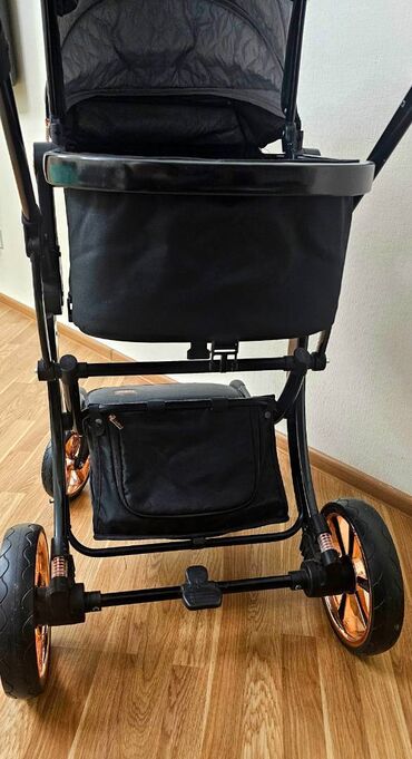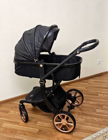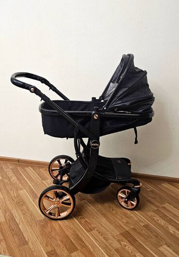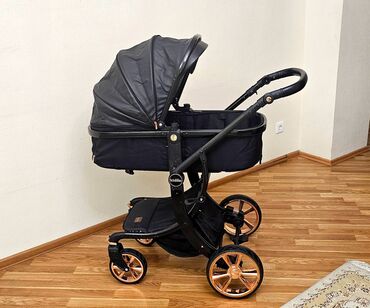 Uşaq arabası – bebekon tipli, yataq səbəti ilə - Rəng: tünd boz/krem-qızılı şassı - Dönər şassi: oturacaq/səbət valideynə və ya irəli baxacaq şəkildə çevrilə bilir - Geniş, dərin beşik tipli səbət...