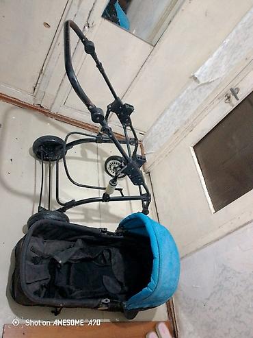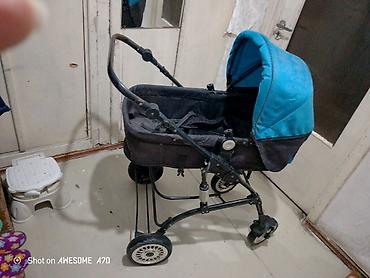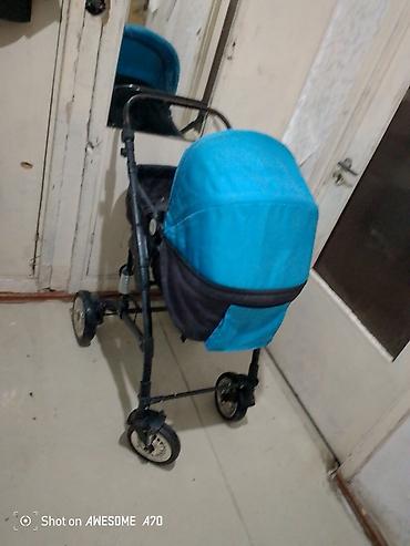 Uşaq arabası – çevrilə bilən, tənzimlənən oturacaq və iri günlük (mavi) ilə.
