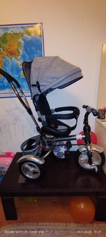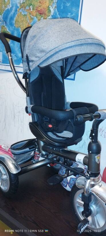 Böyük, boz rəngli uşaq arabası. Rahat oturacağı və tənzimlənən örtüyü var. Aşağı hissəsində əşyalar üçün səbəti mövcuddur. Uşaqla gəzinti üçün əlverişlidir. az istifadə olunub yaxşı vəziyyətdədir ə...