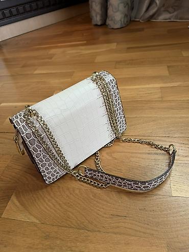 Yenidir hediyye olunub istifade olunmayib 12 azn Zəncirli çiyin çantası – ilan dərisi naxışlı qapaq - Rəng: Ağ gövdə, qapaqda qara-ağ ilan naxışı - Material: Süni dəri - Aksesuarlar: Qızılı rəngli...