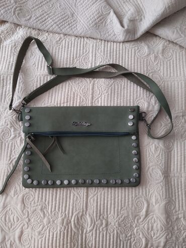 Yaşıl rəngdə, yumşaq materialdan hazırlanmış, dəbli çiyin çantası