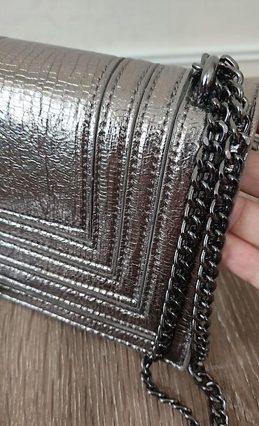 - Material: teksturalı süni dəri (metalik örtüklə), iç hissə parça astarlı