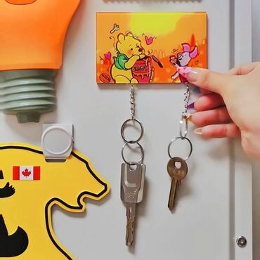 Cizgi filmi personajları və ya binaları təsvir edən açar asqıları. Açarları səliqəli saxlamaq üçün əlverişli və dekorativ vasitədir.