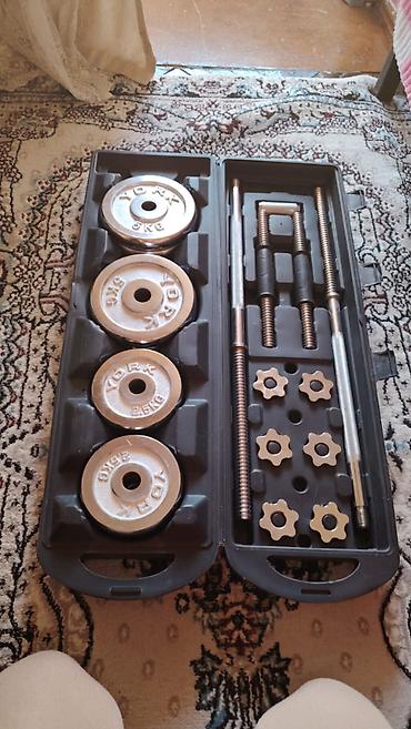 Tənzimlənən xrom dambbell dəsti - Marka: YORK - Komponentlər: 2 ədəd dambbell qolu (yivli uclu), 2 ədəd ulduz formalı sıxıcı (collar), müxtəlif çəkili metal disk lövhələr - Disk çəkiləri (şəkildə ...Giriş•Qeydiyyat