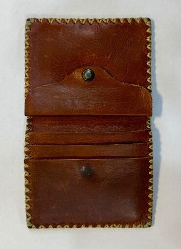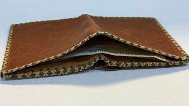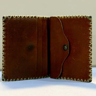 Əl işı tikişli, təbii dəri pulqabı/kartqabı