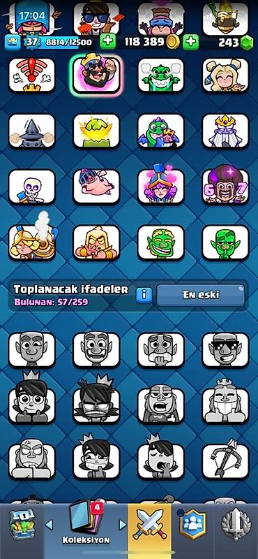 Clash Royale hesabı - Kral səviyyəsi: 37 - Kasa: təxminən 118–122 min