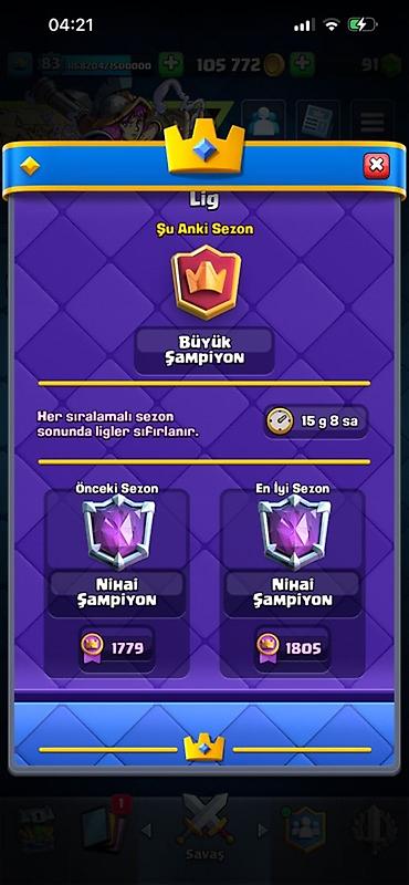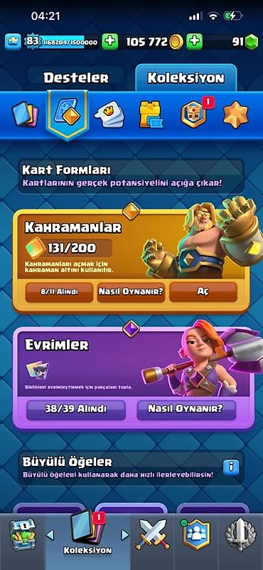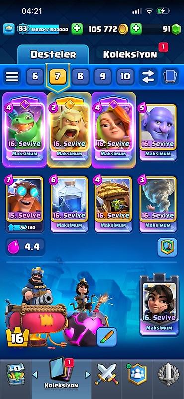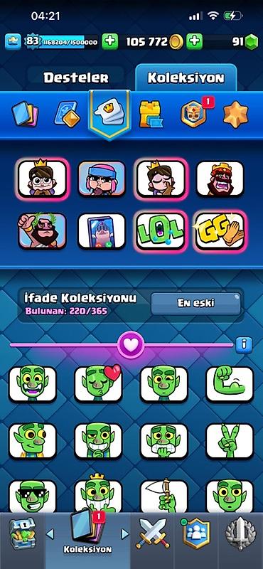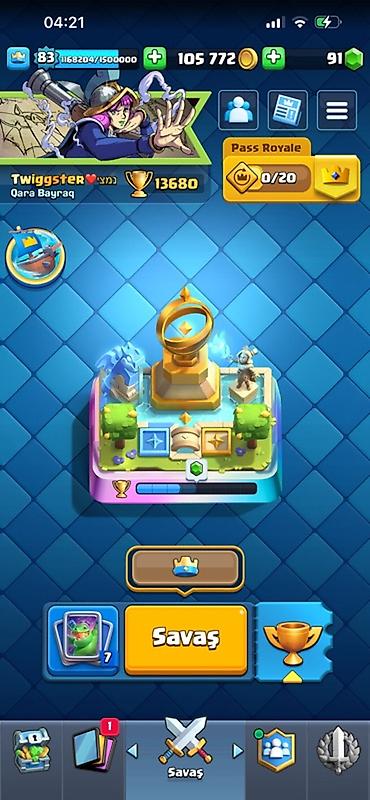 Clash Royale hesabı - Kral səviyyəsi: 83 - Kasa: 105 772 qızıl, 91