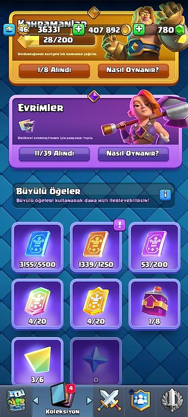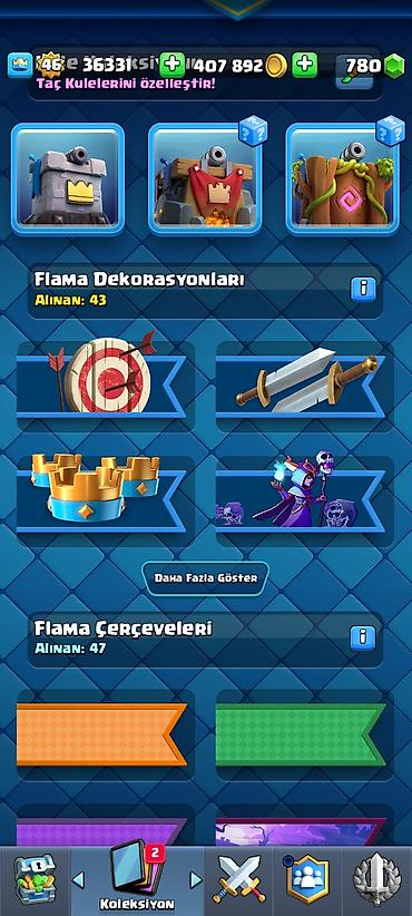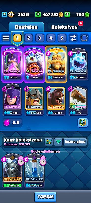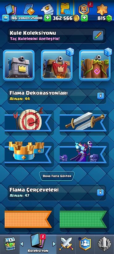 Clash Royale oyun hesabı - Kral səviyyəsi: 35 - Kubok: 7358 - Qızıl: 306 585 - Yaşıl daşlar: 600 - Pass Royale səviyyəsi: 1 (0/10) Kartlar və göyərtələr: - Əsas göyərtədə orta eliksir: 4.3 - Yüks...