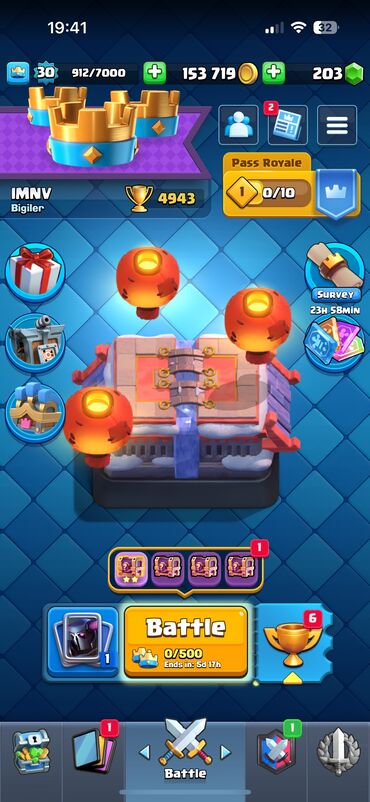 - Kral səviyyəsi: 30 (912/7000 XP)