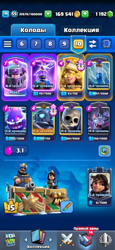 - 15 səviyyə: Elektro Qüllə (progress 119/7500), Qızıl Centlewoman/Monk tipli qız xarakteri (53/750), Mini P.E.K.K.A (311/750)