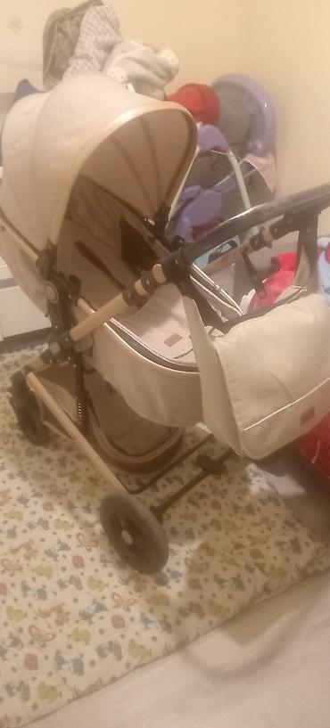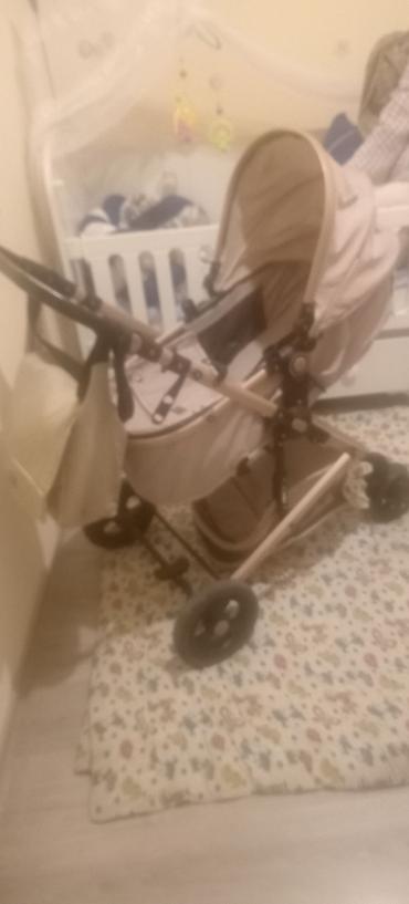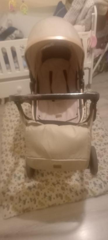 Uşaq arabası – bej rəng, qızılı/qartal tərzində metal çərçivə və qəhvəyi dəri effektli tutacaq. Yenidoğandan başlayaraq otura bilən dövrə qədər. Rəng və dizayn həm oğlan, həm qız uşaqları üçün uyğu...