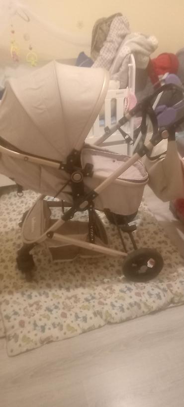 Uşaq arabası – çoxfunksiyalı, rahat və praktik model - Rəng: qəhvəyi/bej tonları - Təkər sistemi: iri təkərlər, ön təkərlər fırlanan, asqı ilə daha yumşaq gediş - Tutacaq: geniş, itələmək üçün rah...