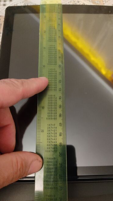 - Ekran: Böyük şaquli panel; təxmini ölçülər fotodakı xətkeşə əsasən təqribən 23 sm hündürlük, 19 sm en.