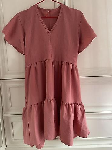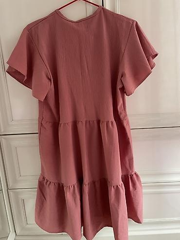 ZARA qadın paltarı - Brend: ZARA (etiketdə EUR S / USA S / MEX 26) - Ölçü: S - Rəng: açıq boz/boz-bej (neytral ton) - Model: A-kəsim, geniş siluetli, maxi/uzun - Yaxa: V-yaxa ön hissədə dekorativ ...