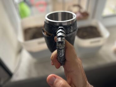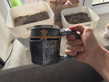 - Material: daxili hissə paslanmayan polad, xarici hissə dekorativ örtük (dəbilqə və zireh motivləri)
