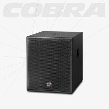 Professional Cobra səs sistemi üçün nəzərdə tutulmuş qara rəngli subvufer. Bu, akustik sistemləri tamamlayan və musiqi dinləyərkən və ya filmlərə baxarkən səs keyfiyyətini yaxşılaşdıran güclü bas səsləri təmin edən bir cihazdır. Kompakt kvadrat formalı dizaynı sayəsində otağın istənilən hissəsinə rahat yerləşdirmək mümkündür. Subvuferin ön hissəsində Cobra loqosu yerləşir.