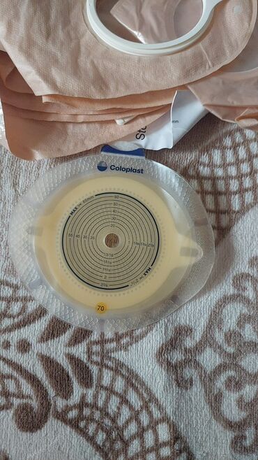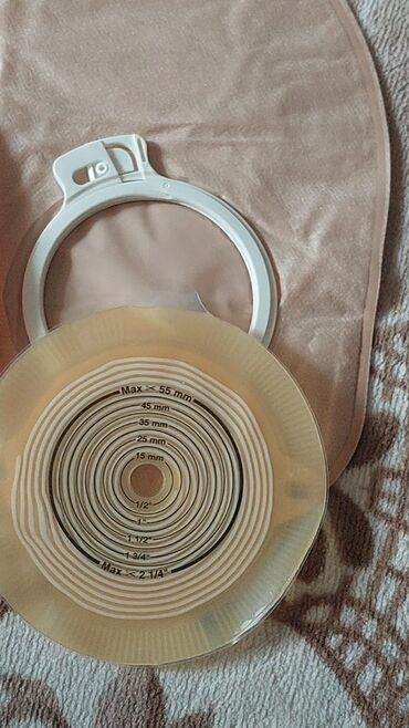 - Şəkillərdə Coloplast torbaları və kilidli halqa mexanizmi görünür – iki hissəli klik sistemi ilə tez taxılıb-çıxarılır.