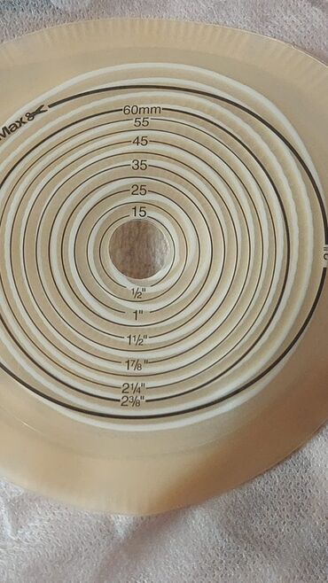 - İkihissəli stoma sistemi üçün flanş/plastinka (baza). Üzərində kəsim üçün ölçü dairələri var.