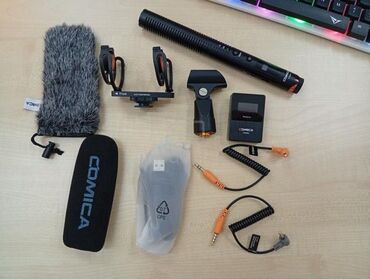 Dəstdə göstərilən bütün aksesuarlar şəkillərdə mövcuddur. mikrofon, shogun mikrofon, rode, boom mikrofonu, film mikrofonu