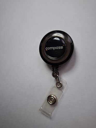 Məhsul: Compass markalı çəkilə bilən badge/ID kart tutacağı - Rəng: qara gövdə, şəffaf plastik lent - Mexanizm: yaylı çəkilə bilən bənd (retractable reel) – ID kartı asanlıqla uzadıb geri toplamaq...