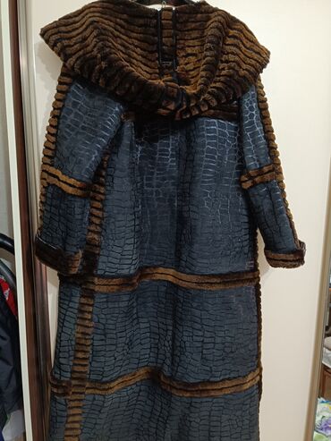 Razmer 3 xl. Çox gözəl paltodu. təzədir, Ölçüsü böyük olduğuyçun satılır. Qadınlar. üçün uzun süni xəz palto - Rəng: tünd qəhvəyi gövdə, kontrast böyük boz xəz yaxalıq - Material: yumşaq süni ...