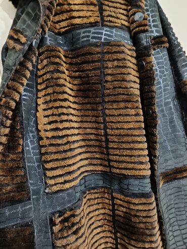 Qadın üçün qışlıq palto təp təzə heç geyinilməyib - Rəng: tünd qəhvəyi - Material: üst hissə teksturalı (krokodil naxışlı) dəriyə bənzər parça; içi qalın, yumşaq xəz astarlı - Kürk detalları: iri...
