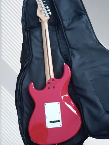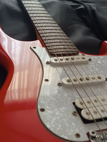 - Rəng: Parlaq qırmızı, ağ perloid pickguard