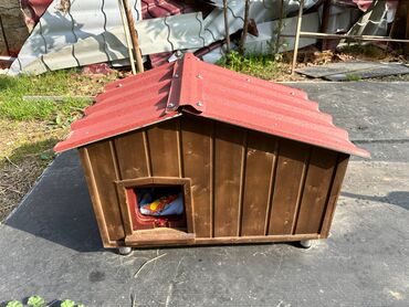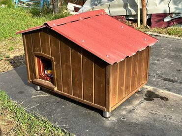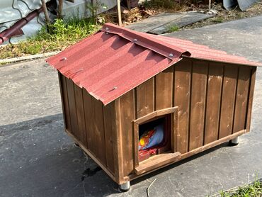 Taxta pişik evi / sığınacaq - Material: kontrplak və MDF kombinasiyası, möhkəm karkas - Ön paneldə havalandırma və işıq üçün 4 ürək fiqurlu pəncərə və pişik başı formalı giriş - Eğimli dam konstru...