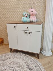 Mebel növü: Komod/şkaf kombinəsi Təsvir: - Rəng: krem/bej - Sağ tərəfdə 3 geniş çekmece, sol tərəfdə iki qapılı bölmə - Qızılı rəngdə halqa formalı dəstəklər - Üst hissə düz və geniş səth – dekor,...