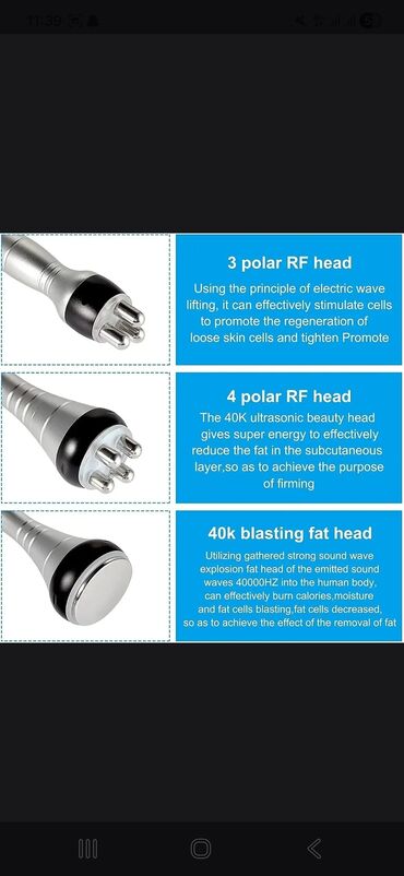 - Kavitasiya 40K başlıq – 40000 Hz ultrasəs dalğaları ilə lokallaşdırılmış bölgələrdə işləmək üçün.