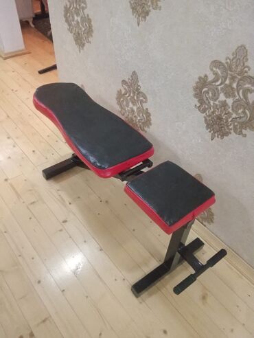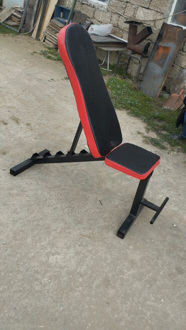 Çoxfunksiyalı fitnes skamyası - Üst və oturacaq hissəsi qara rəngdə, qırmızı haşiyəli yumşaq süni dəri örtüklüdür. - Güclü metal karkas, sabit T-şəkilli dayaq. - Əlavə oturacaq/dirək və aşağı hiss...
