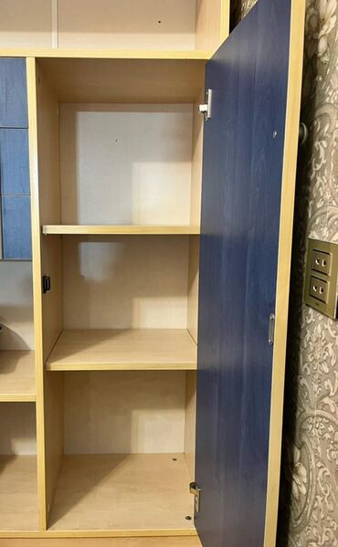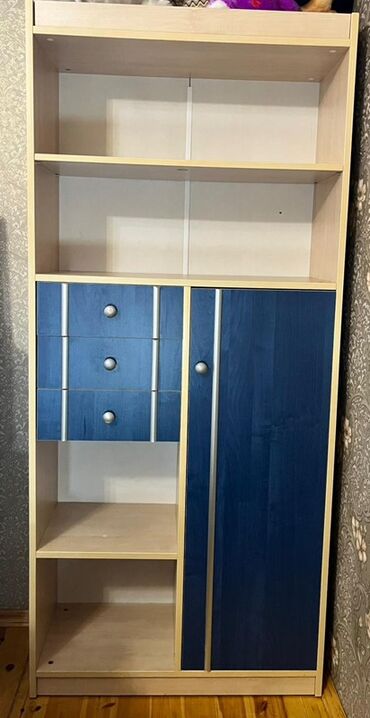 Məhsul: Modul tipli rəf sistemləri Təsvir: - Material: Laminat/LDSP (DSP) plitə, mavi rəngli panellər, kənarları möhkəm konstruksiya ilə bərkidilmiş. - Komplekt: - 1 ədəd iri ikili rəf bloku: ik...