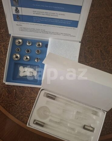 - Mikrodermabraziya üçün dəst: 3 ədəd paslanmayan polad tutacaq və 9 dəyişən almaz ucluq, ayrıca filtrlər