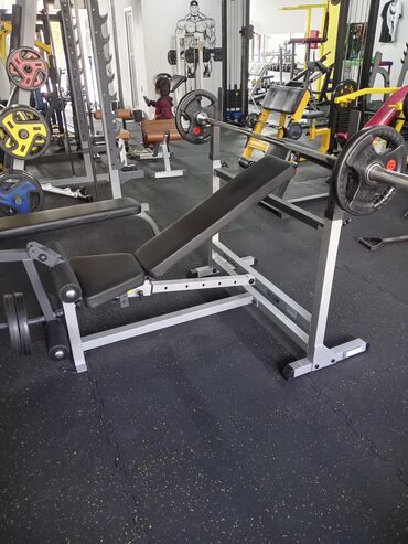 Şəkillərdə göstərilən ştanq və ağırlıq disk lövhələri mövcuddur; qurğunun üzərində rahatlıq üçün rulon yastıqları və tutacaqlar var. Robust quruluş, müxtəlif bucaqlarda sazlama, bir skamyada bir neçə məşq seçimləri.