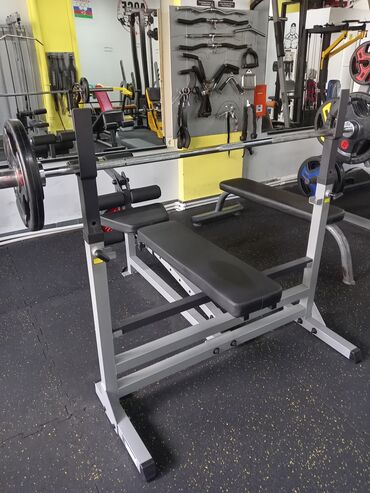 Çoxfunksiyalı trenajor skamyası – ştanq üçün rekli (inklinasiya) və düz skamya kombinasiyası