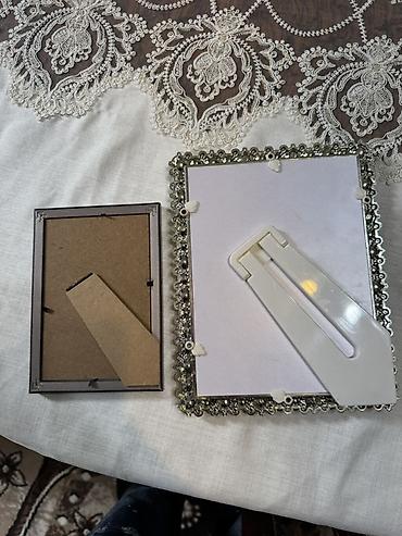 3Dənə Ramka İstifadə Olunmayıb Foto çərçivələri dəsti - Modellər: • Şüşə önlü, çiçək naxışlı çərçivə – daxilində 4"x6" (10x15 sm) ölçülü şəkil üçün yer. • Bəzəkli inci və daşlarla kənarları ...