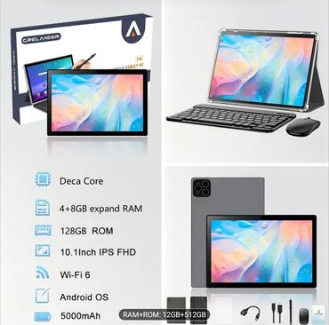 - Komplekt: maqnitli örtük/stand, ayrılan Bluetooth klaviatura, simsiz siçan, USB‑C şarj/data kabeli, OTG adapter, toxunma qələmi