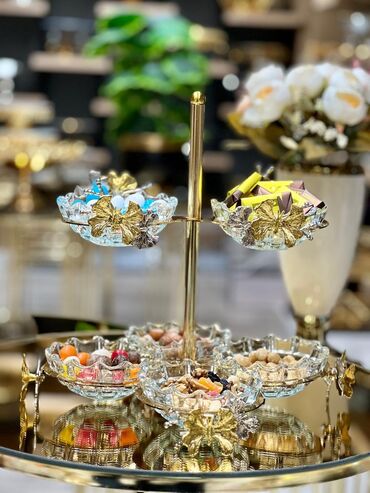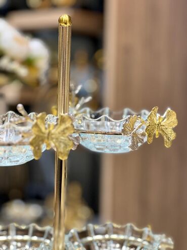 Tort və şiriniyyat qabı, rəng - Qızılı, Şüşə, Türkiyə