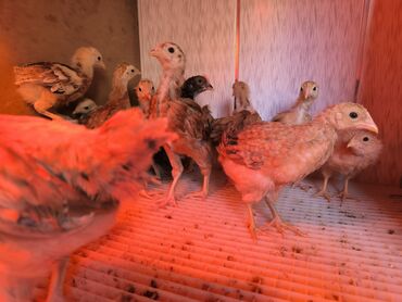 2 ay 1 həftəlik sağlam cücələrdi. vaksinləri və qurd dərmanlrı verilib. Təsvir: - Şəkillərdə çoxsaylı sağlam cücələr göstərilir; ağ, boz və qara ləkəli rəng çalarları mövcuddur. - Qapalı, saman al...