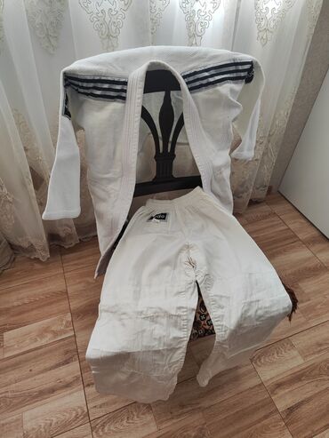 Məhsul: Adidas judo gi üst geyimi (kimono üstü) - Rəng: ağ, çiyinlərdə mavi Adidas zolaqları - Brend: Adidas - Model etiketi: “Judo” üst hissə, ölçü L (etiketdə göstərilib) - Material: qalın, toxu...