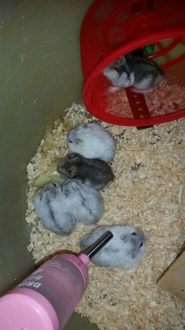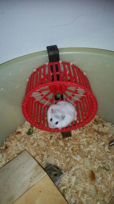 Cunqarik ağ və qarası var. Yeni balalardir. cunqarik təkağ 6₼ qara4₼ 1cüt 10₼ dır. şəkilə gördüyünüz yeni qəfəsdə satılır. Su qabı,yem qabı, qaçış çarxıda üstündə. Alanda üstündə Vitaminli yem, Api...