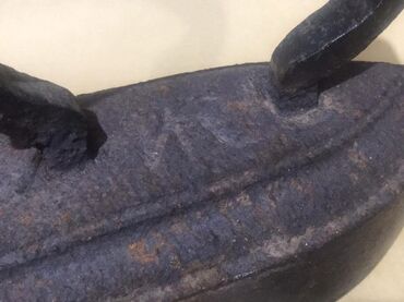 Antik dəmir ütü (İngiltərə, XIX əsr) Nadir dövrə aid tökmə dəmirdən hazırlanmış qədim ütü. Orijinal forması və üzərində möhür var. Retro və ya loft üslublu interyerlər üçün mükəmməl dekor və ya ko...