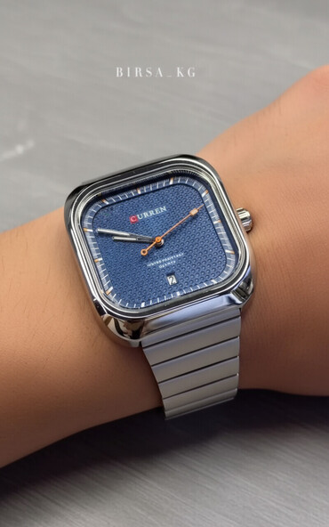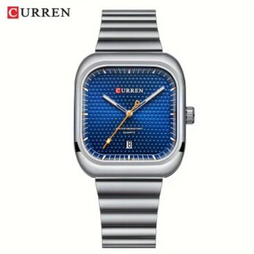 Curren kişi qol saatı - Korpus: paslanmayan poladdan, kəskin xətli kvadrat/yaerim-düzbucaqlı dizayn - Rəng: gümüşü korpus və brestlet, mavi siferblat - Mexanizm: Quartz (üzərində “Quartz” qeyd olu...