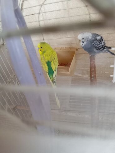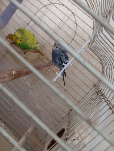 - İki ədəd dalğalı tutuquşu: biri sarı-yaşıl rəng çaları, digəri boz-ağ rəng çaları.