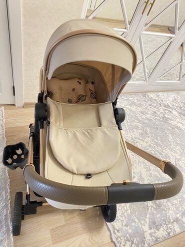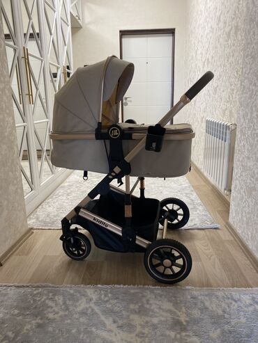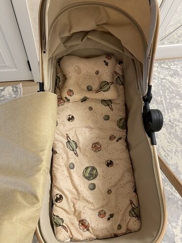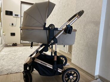Uşaq arabası – bej rəng, lyulka tipli Xüsusiyyətlər: - Tam örtülü, geniş tənzimlənən kapot günəşdən və küləkdən qoruyur - Yumşaq lyulka hissəsi, içəridə heyvan fiqurlu naxışlı qoruyucu büzməli kən...