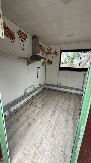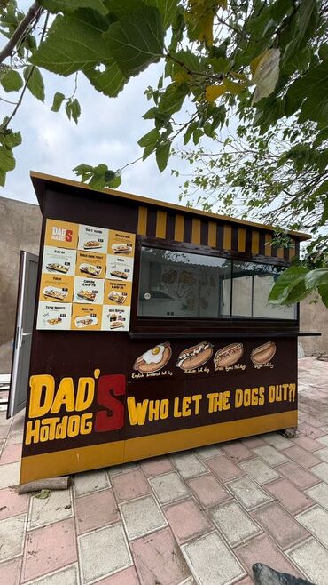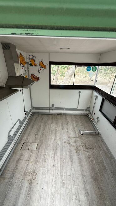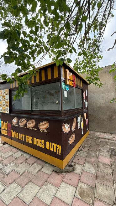 Satılır: Mobil ticarət köşkü (pavilion) - Ön və yan tərəfləri şüşəli vitrin sistemli, orta hissədə giriş qapısı - Üst hissədə iri vizual lövhə/markiz üçün hazır nişa - Karkas: metal konstruksiya, ...