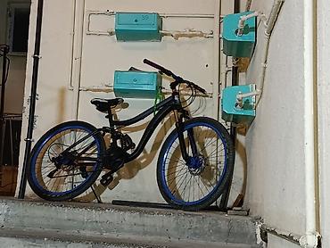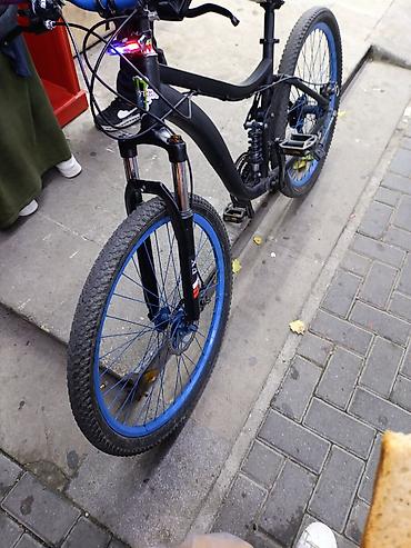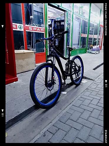 Dağ tipli velosiped - Rəng: mat qara gövdə, mavi disklər və şin