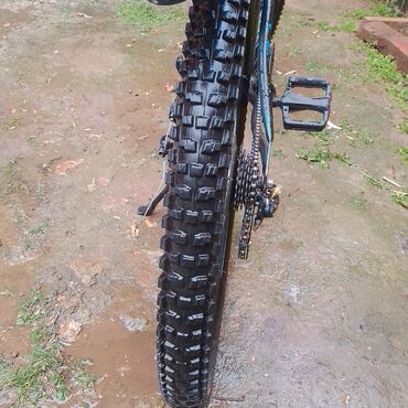 Dağ velosipedi - Güclü, qalın naxışlı təkərlər – həm şosse, həm də çətin torpaq yollar üçün uyğun. - 26/27.5 düym ölçülü təkər formatı (şəkilə əsasən iri ölçü). - Disk əyləcləri – arxa təkərdə mex...