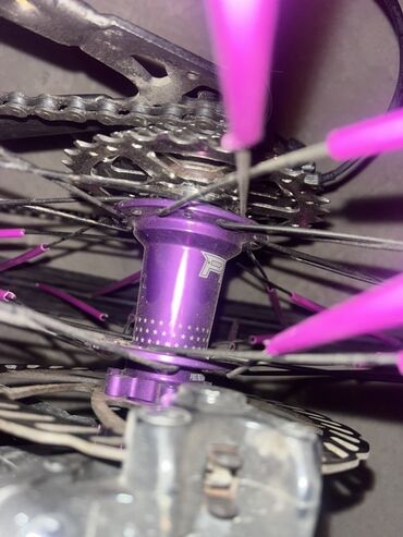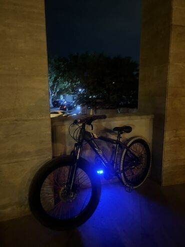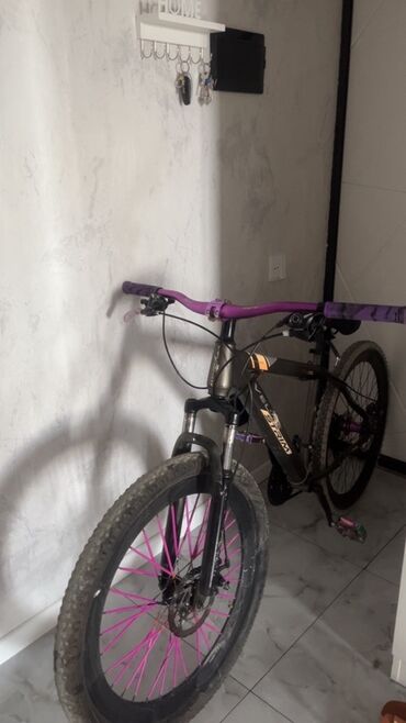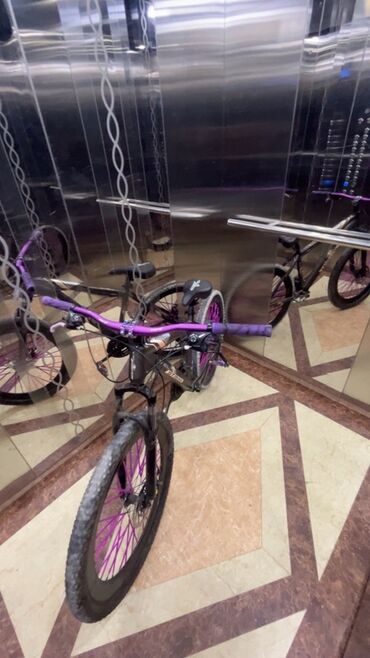 Bu dağ velosipedi qara rəngdə çərçivəyə və bənövşəyi detallara malikdir. Qalın təkərləri və amortizasiya sistemi ilə müxtəlif ərazilərdə rahat sürüş təmin edir. Bənövşəyi rəngli təkər milləri və disk əyləcləri velosipedin ümumi görünüşünü tamamlayır. Bu velosiped həm şəhər içi, həm də çətin yollarda istifadə üçün uyğundur.Arxa hidravlik tormuz,arxa disk deyisilib,xamelion pedal,rul,vinis,qrips,almaga deyer.