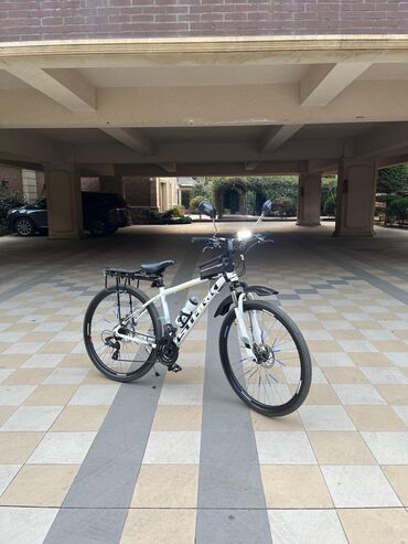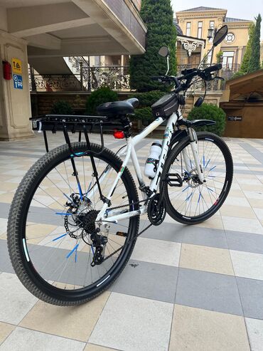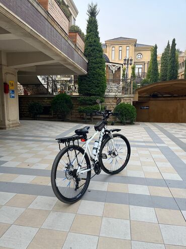 Velosiped – dağ/şosse hibrid tipli, ağ rəngli, tam aksesuarlarla.